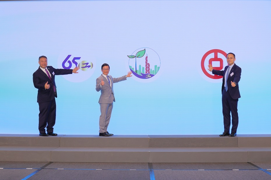 圖2:工總主席林世豪(左)、環境保護署副署長鄭健(中)及中銀香港副總裁王化斌(右)主持開展儀式。