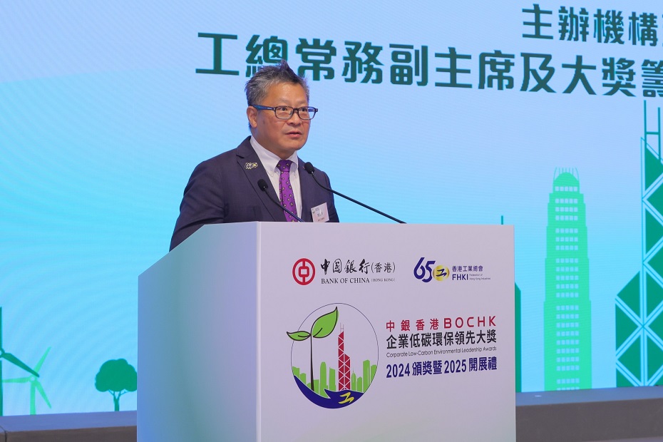 香港工業總會(「工總」)主辦、中國銀行(香港)(「中銀香港」)全力支持的「中銀香港企業低碳環保領先大獎」今日(8月19日)舉行2024頒獎暨2025開展禮。典禮榮幸邀得環境保護署副署長鄭健擔任主禮嘉賓,吸引逾500人出席,場面盛大。